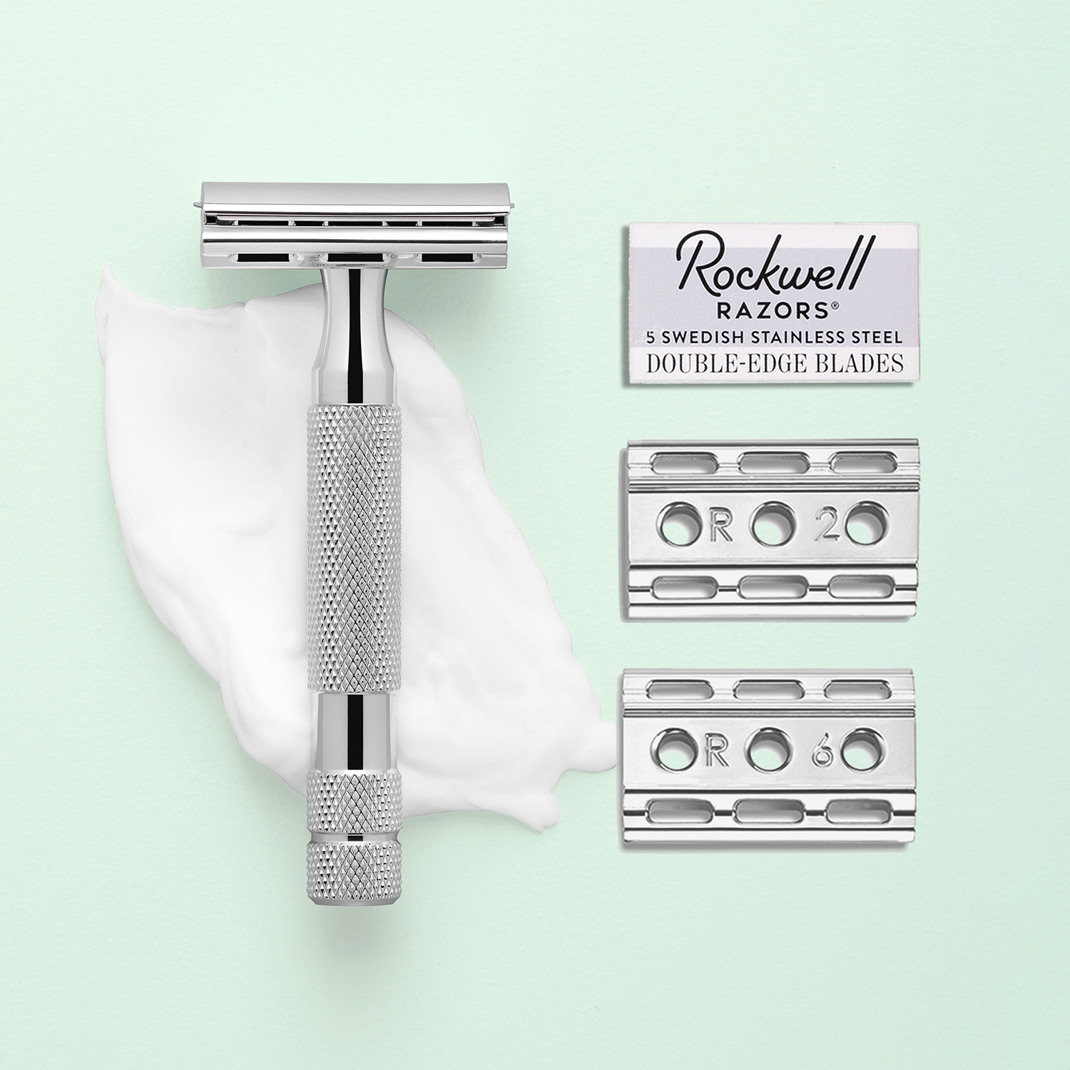 Upgrade your bathroom counter, improve your skin, stop plastic waste and save a fortune on shaving with the Rockwell 6C Razor Stand Kit.